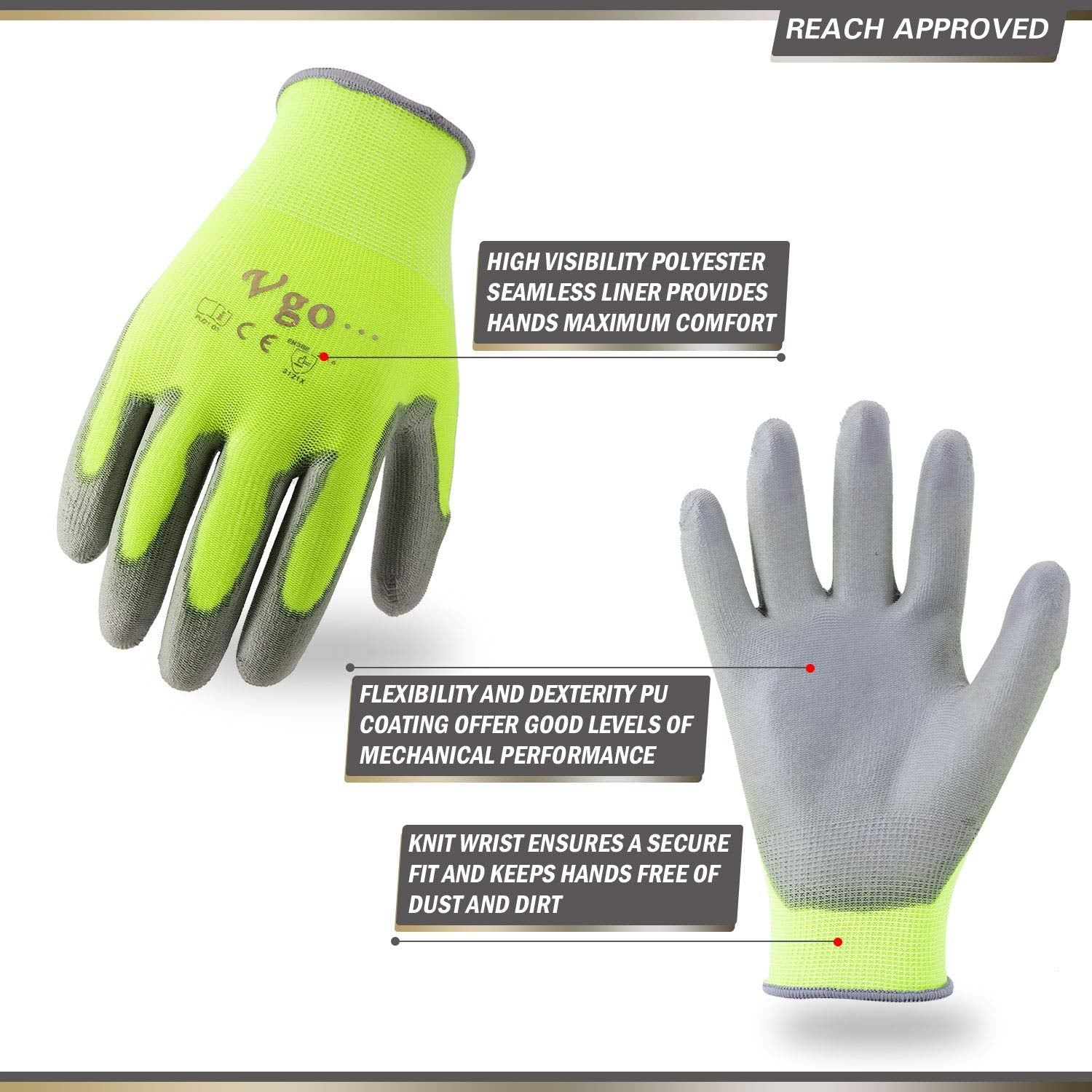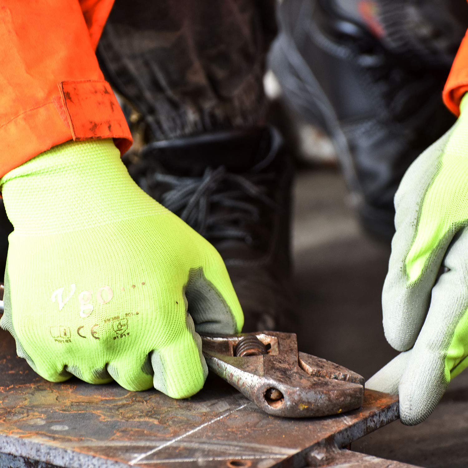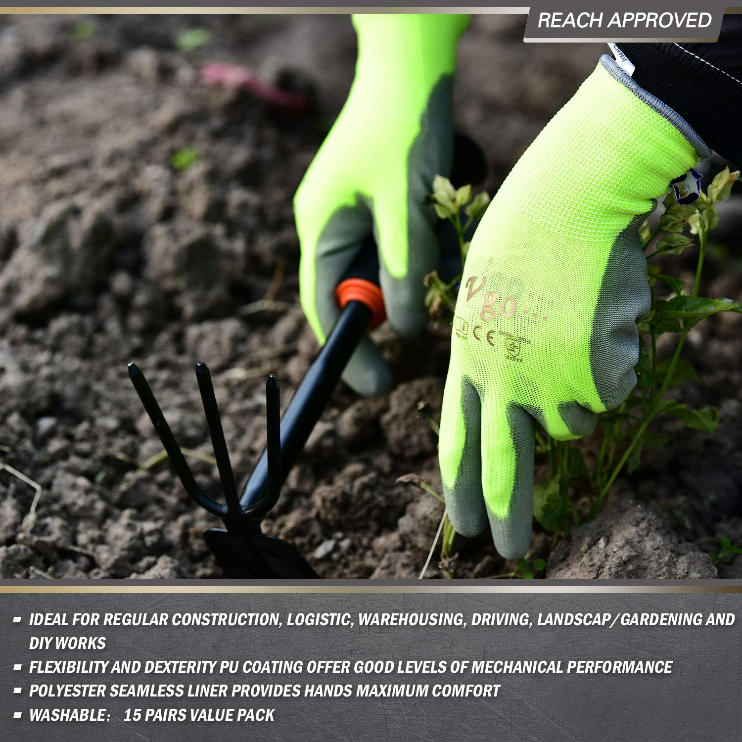 Vgo 30 paia guanti da lavoro e giardinaggio in PU, 7/S, Verde Fluorescence