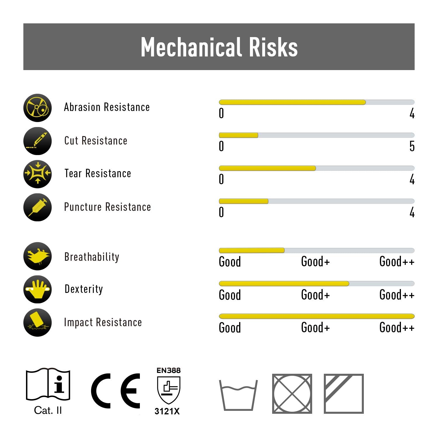 • Conforme al Reach Regulation, certificato CE con EN388: 2132X; lavabile in lavatrice. Confezione Super Economica: 3 paia in un pacchetto!