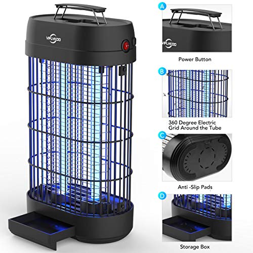 VIFLYKOO Zanzariera Elettrica,Lampada Antizanzare Elettrico Insetticida 18w 80㎡ con Luce UV e Cassetto Raccogli,Trappola per Insetti per Interni di Grandi Dimensioni per Casa Giardino Interno Esterno