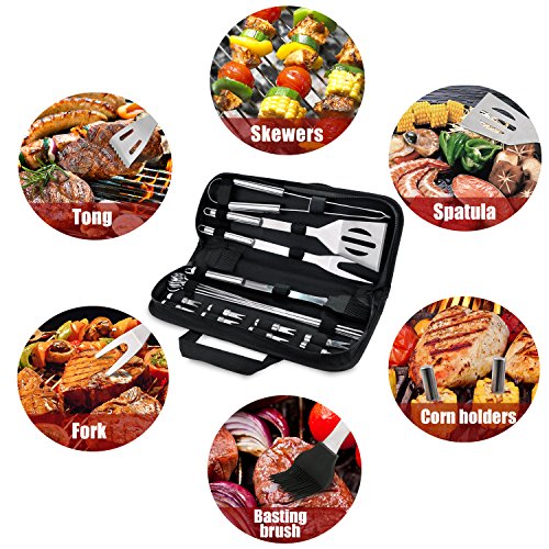 WisFox Set di Utensili per Barbecue, 20 Pezzi Set Posate Barbecue Grill Set di Attrezzi Barbecue Griglia di Cottura in Acciaio Inox Premium Deluxe Kit di Cottura per Barbecue All'aperto in Alluminio