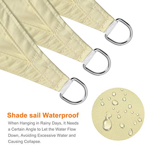 • ♥ Accessori completi e dimensioni perfette: le dimensioni della vela ombreggiante 5*5*5 m, 3 anelli in acciaio inossidabile, 1 sacchetto di immagazzinaggio e 3 funi fisse (1,5 m) per aiutarti a riparare il parasole in caso di maltempo.