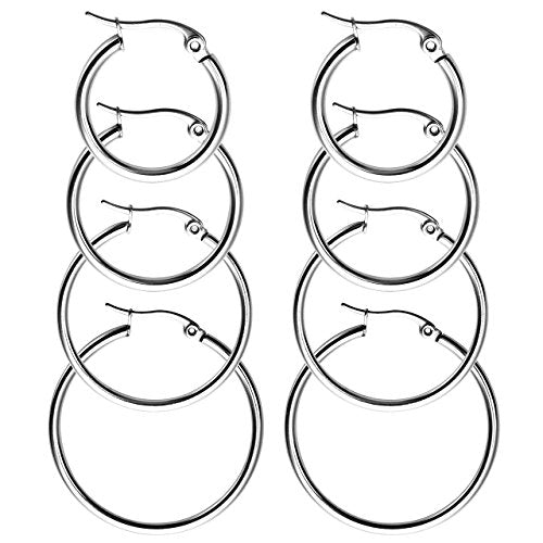 4 Paia Orecchini in Acciaio Inox a Cerchio Argento Oro