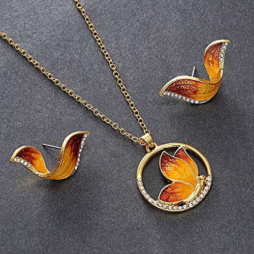 AILUOR Gioielli Elegante Set Farfalla dello Smalto, Orecchini Collana Giallo - Ilgrandebazar