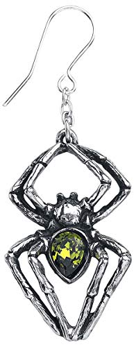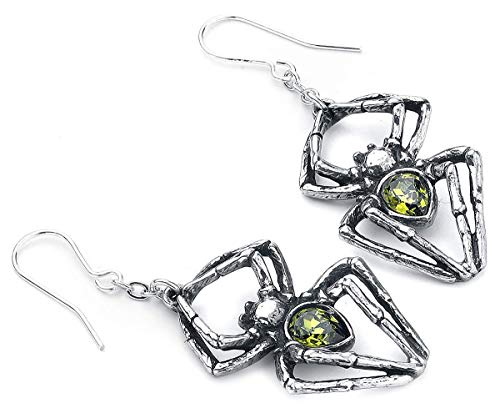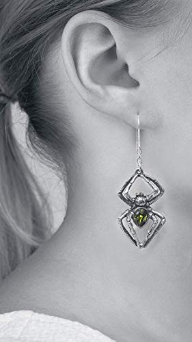 Il mortale, viridescente coppia predatoria sono quiescente, unnervoingly pronta a affondare le loro zanne in qualsiasi preda conveniente e desiderabile. Orecchini accattivanti che iniettano il dramma gotico in qualsiasi outfit! Un paio di 40mm lungo antico peltro, orecchini di ragno, i loro corpi impostati con cristalli Swarovski verdi.