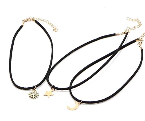 • Materiale: lega e pelle. Il set è composto da girocollo a stella, girocollo e luna. Ritenzione del colore, non sbiadisce.