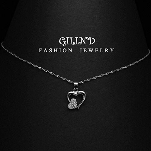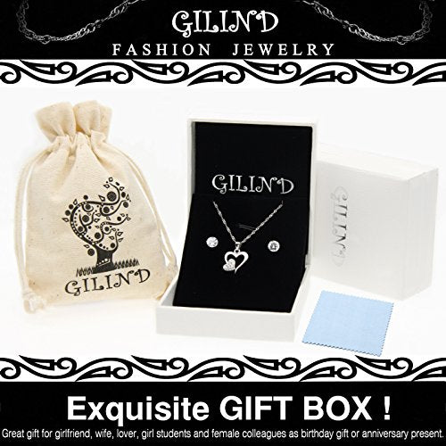 Gilind Collana Argento 925 Cuore e orecchini set per le donne + Double Heart