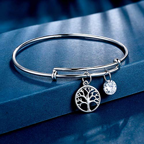 - DESIGN ESQUISITO E LUCIDO Questo braccialetto d'argento per donna rappresenta l'amore infinito e duraturo: la parte dell'albero della vita simboleggia la pace, la salute, la protezione, la saggezza e la calda famiglia; La parte di zirconia simboleggia l'eternità, lo splendore e l'amore eterno.