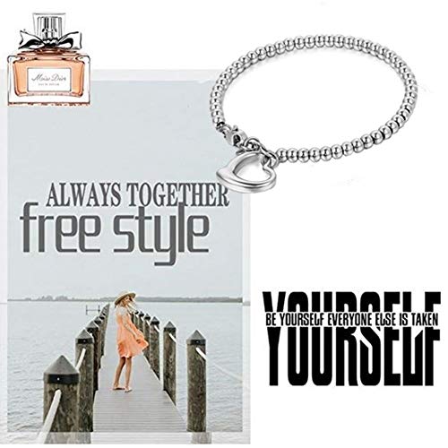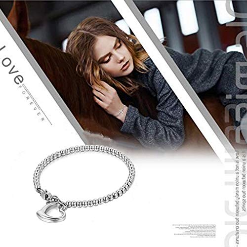 JewelryWe Gioielli Braccialetto Portafortuna da Donna Ragazzi con Ciondolo Cuore in Acciaio Inossidabile Colore Argento