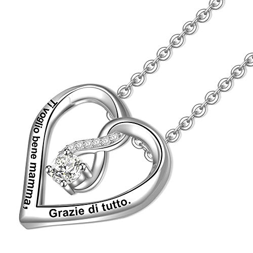 LOVORDS Collana Donna Incisa Argento Sterling 925 Pendente Ciondolo Cuore Infinito Regalo Mamma Madre Fidanzata Moglie Nonna Figlia