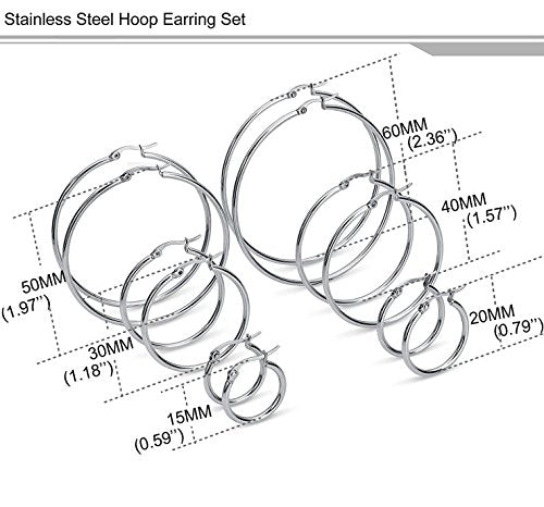 Sailimue 6 Paia Orecchini a Cerchio Acciaio Inox A 6 Di Color Argento