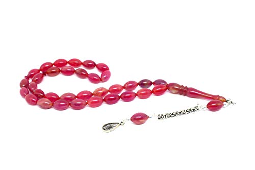 DunyaGems - Perline per preghiera in ambra turca con nappa in argento Sterling 925, Tasbih, Kehribar Tesbih, Rosario musulmano, Tasbeeh, Komboloi, Misbaha, regalo Specifiche Materiale delle perle: miscela di ambra (nota anche come nuova bachelite) (SIKMA Kehribar). Materiale nappa: argento Sterling 925 (gomma ayar 925). Numero di perline: 33 Dimensioni delle perline: 11,0 mm x 7,0 mm (± 0,3). Dimensioni: 42,0 mm (±%10) Peso: 15,73 grammi (±10%) Altre qualità: può cambiare colore con l'uso come in ambra pura. Perline di preghiera (aka Tasbih, Tasbeeh, Tesbih, Rosario, Perline di preoccupazione, Komboloi, Misbaha, Sub, Tespih, Mala) Una stringa di perline da preghiera che vengono portate in giro da molte persone, utilizzate sia come compagno per tenere traccia di quante preghiere sono state dette o come accessorio alla moda e prestigioso per il relax, ridurre il fumo, fare trucchi, tenere le mani occupate e come un costoso simbolo di stato. Dunya Gems è orgogliosa di compilare una collezione unica di perline da preghiera che è la perfetta incarnazione di artigianato turco secolare. I materiali utilizzati per rendere le perline di preghiera variano. Possono essere realizzati in legno, osso, ambra, oro, argento o molti tipi di gemme. Crediamo che i tasbih siano pieni di vita e testimoniano ogni momento e vivono la tua vita con te, e la nostra intenzione è renderli il più speciale possibile per te, continuando questo artigianato per più generazioni a venire. * Ambra Composite Mix \xe8 noto anche come nuova bachelite o SIKMA/ATES Kehribar in turco, \xe8 un materiale che ottiene un tono più scuro con un uso prolungato. È il materiale più popolare per i maestri tasbih. Si prega di notare che questo è un articolo realizzato a mano e potrebbe esserci una leggera differenza rispetto alle foto.