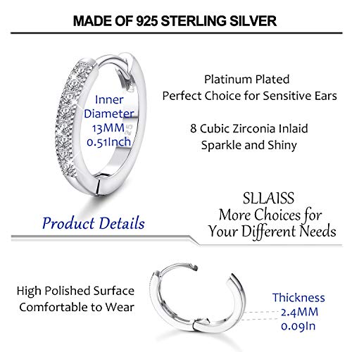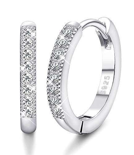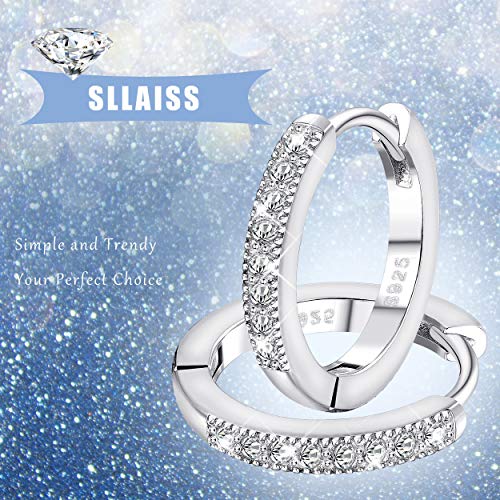 Sllaiss Orecchini a Cerchio con Zirconi Piccoli per Donne Orecchini a Cerchio Huggy in Argento Sterling 925 Ipoallergenico