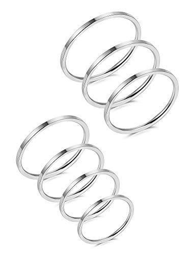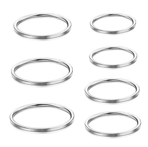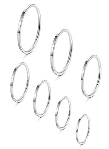 Yadoca 7 Pezzi Acciaio Inossidabile Anelli Impilabili per Donne Argento-tone