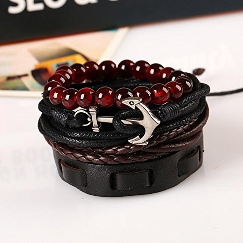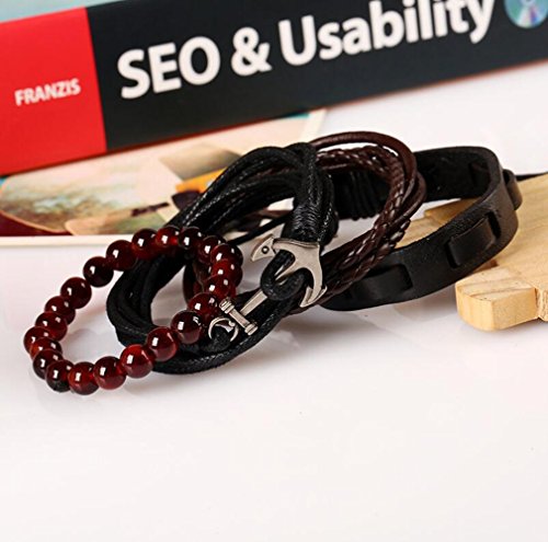 4PCS Bracciale da Uomo Retrò pelle Braccialetto di perline naturali, VMINE... - Ilgrandebazar