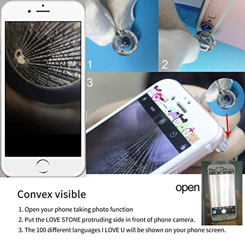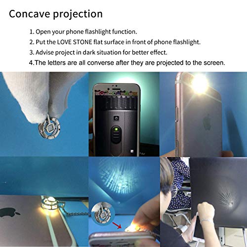 - ♥ Due metodi da controllare - Quando si utilizza il software della fotocamera del telefono cellulare per riprendere la superficie convessa micro-intagliata, l'orientamento del carattere del contenuto micro-intagliato sullo schermo del telefono cellulare è corretto; quando si utilizza la torcia per illuminare il piano di micro-intaglio, dopo la proiezione, il carattere del contenuto di micro-intaglio nel ciondolo che si vede è l'immagine speculare. (Si prega di vedere l'immagine per l'effetto spe