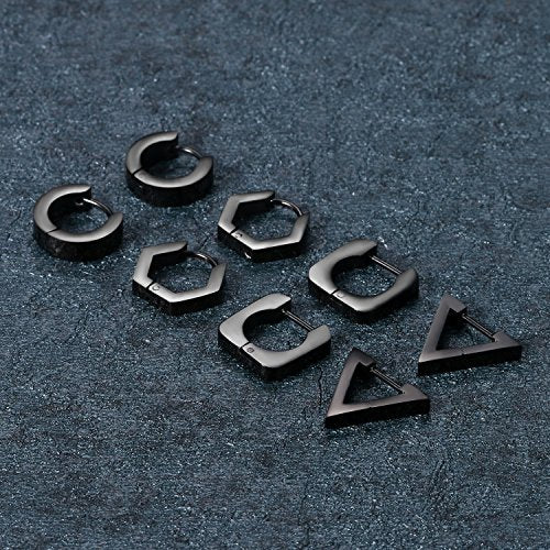 Aroncent 8PCS donna uomo Huggie orecchini a cerchio in acciaio INOX Black