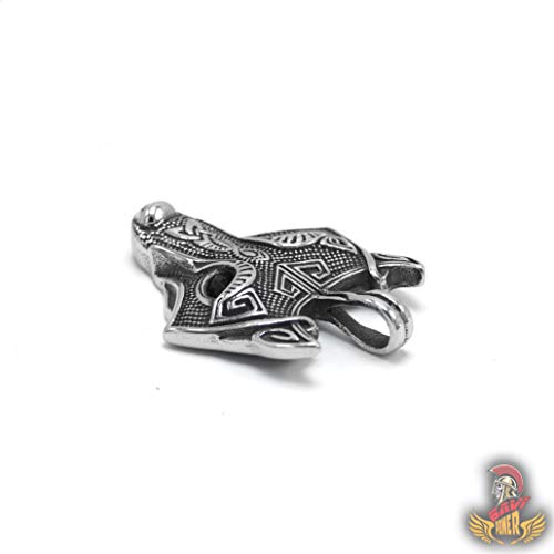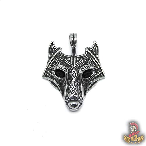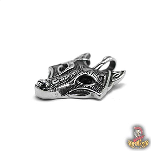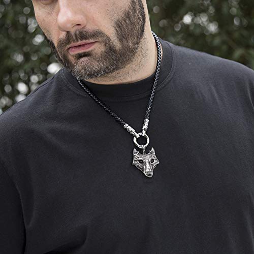 BaviPower - Collana in pelle intrecciata con ciondolo a forma di testa di lupo in acciaio inox, stile nordico/scandinavo