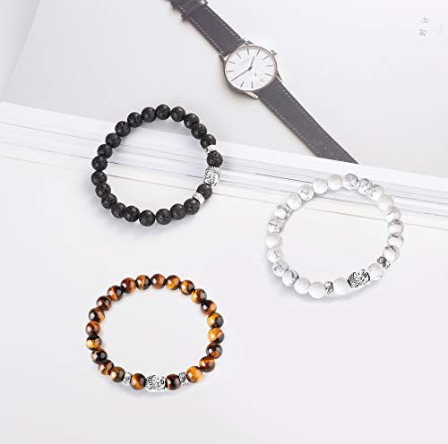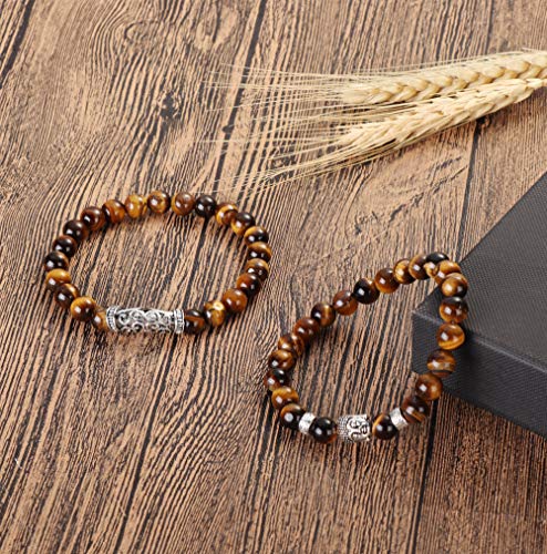 BESTEEL 6PCS 8MM Palline Bracciali per Uomo Vulcanica Giallo Tigre Occhio Bracciali Bianco di Pino Buddha Testa Bracciali Rock Gothic Punk Bracciali Elastico Set
