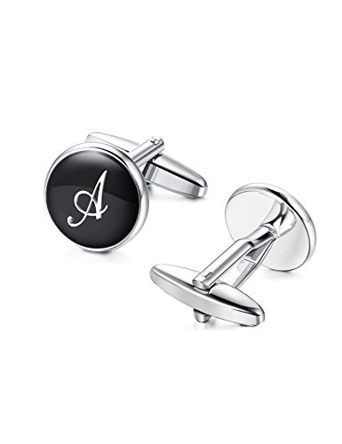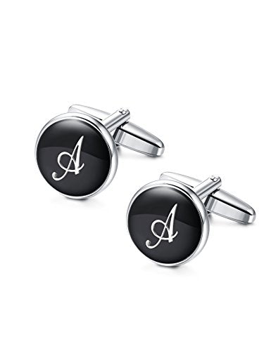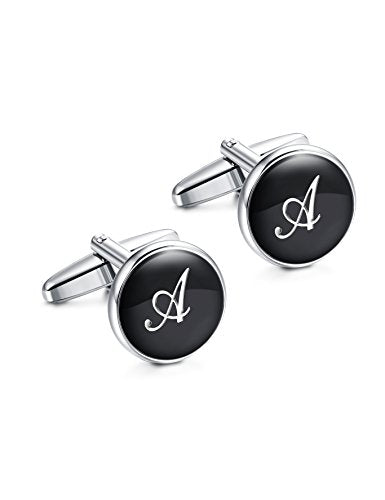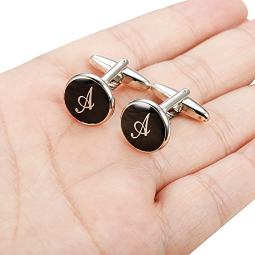 BESTEEL Gioielli Gemelli Classico Iniziale Incisa per Uomo Alfabeto Lettera Nero Camicia Matrimonio Aziendale Formale A-Z