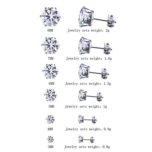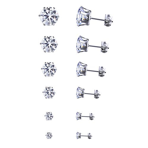• ♥ Non sarà mai mancare orecchini: sei paia in un set - Diametro: 3mm, 4mm, 5mm, 6mm, 7mm, 8mm; Colore: argento bianco; Acquista un get. 6