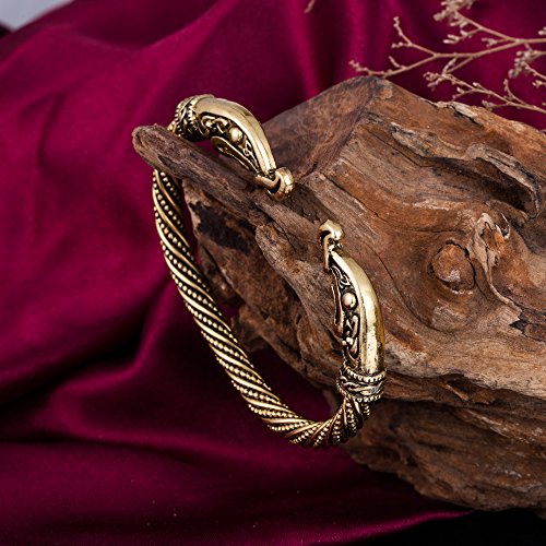 Bracciale rigido in stile scandinavo antico, ritorto con teste di drago, gioiello per uomo/donna