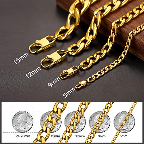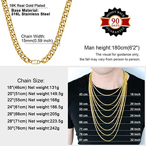 ChainsHouse Hip Hop Curb Ragazzi Collana Catena a maglie cubane in Oro(15mm)