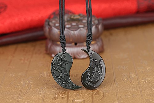 • Materiale: ciondoli yin yang in ossididana intarsiata raffiguranti rispettivamente drago per lui e fenice per lei, grandezza ciondoli 46*28*mm