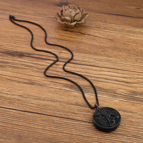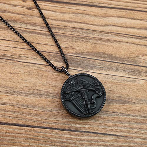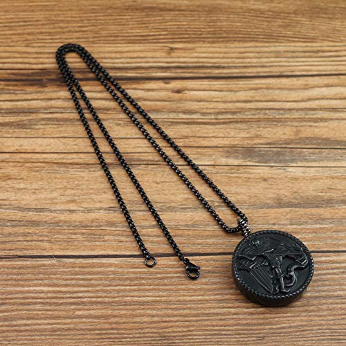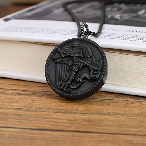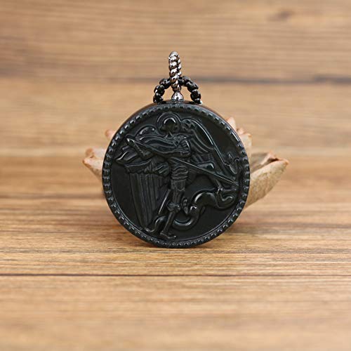 COAI Pendente in Ossidiana Nera con San Michele Intarsiato, Acciaio Inox