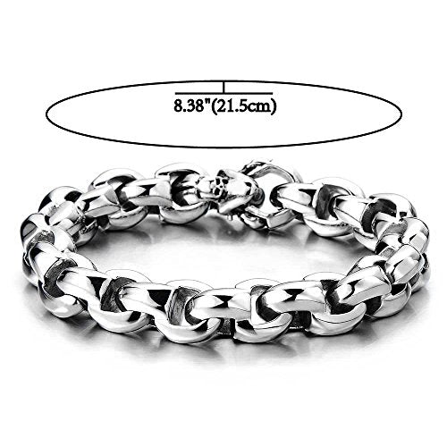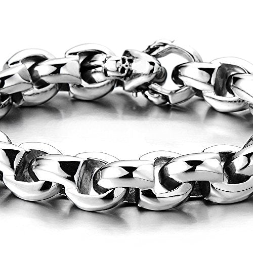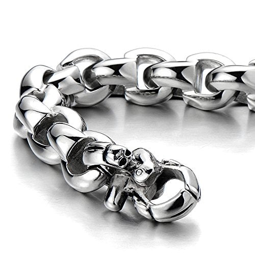 COOLSTEELANDBEYOND Alta qualità Collegamento Chain, Catena del Grano, Bracciale da Uomo, Acciaio Inossidabile, Braccialetto Croce, Biker