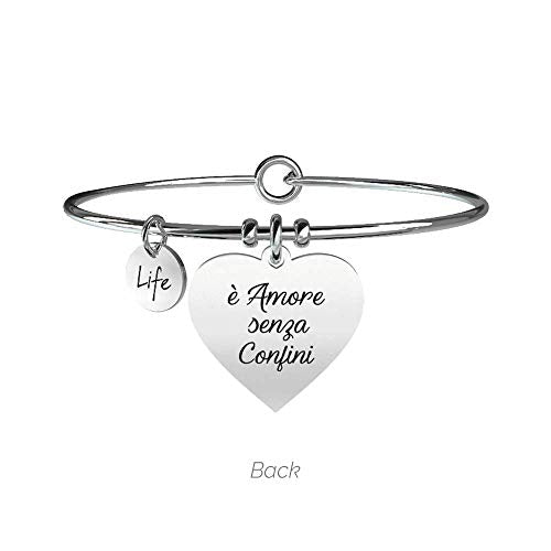 - Bracciale in acciaio con ciondolo a forma di cuore con la frase incisa ”Il cuore di una nonna è amore senza confini"