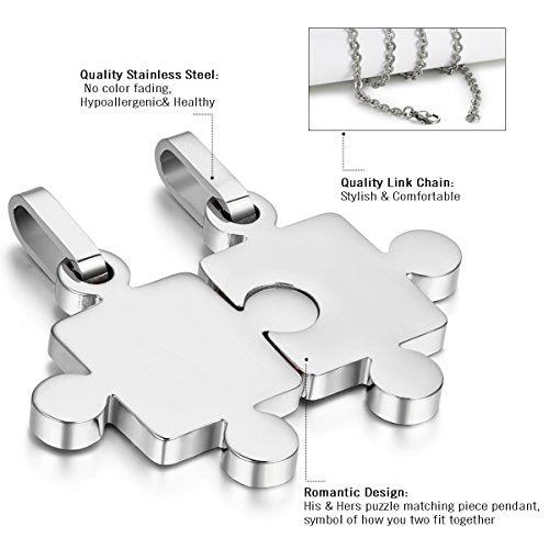 Cupimatch 2pcs Acciaio Inossidabile Pendente Coppia Ciondolo Collana Amore San Valentino regalo di natale per Uomo Donna con catena 45cm e 54cm