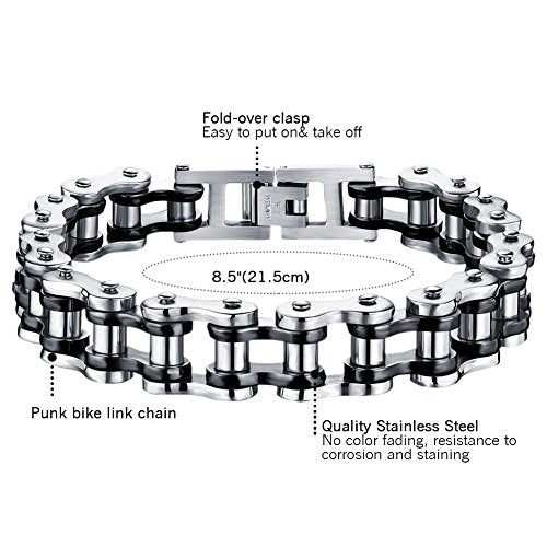 Cupimatch Uomo Braccialetto Bracciale Catena Bici Acciaio Inox Nero Argento Regalo Perfetto
