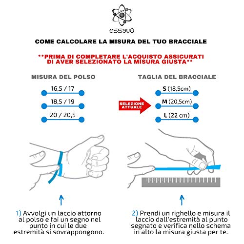 - ADATTO A TUTTI POLSI - Grazie alle tre misure disponibili (cm. 18,5/20,5/22) non c'è più bisogno di adattarsi a misure approssimative ma è possibile scegliere la misura giusta per il proprio polso **PER CONOSCERE LA TUA MISURA CONSULTA LA TABELLA NELLE IMMAGINI A SINISTRA** Il Bracciale ora selezionato è la misura "M" (Cm.20,5)