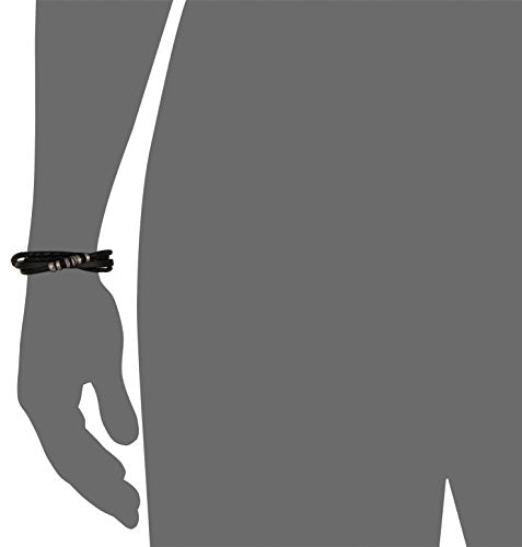 - Bracciale in vera pelle nera con perline in acciaio inossidabile e 4 trefoli, 2 dei quali sono intrecciati - Chiusura a bottone