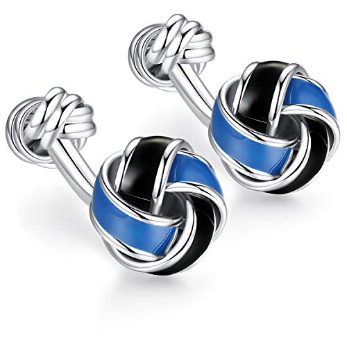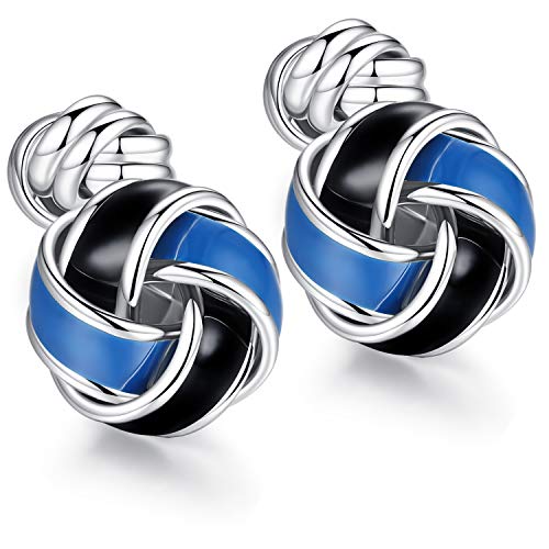 HONEY BEAR Nodo Gemelli da Polso Uomo - Camicia Acciaio per Matrimonio Commercio Regalo Blu con Nero
