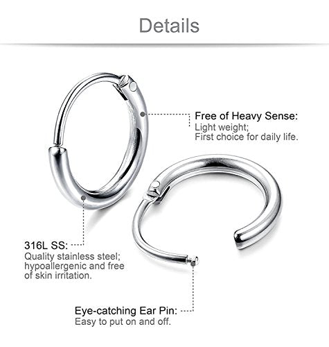 Jstyle Gioielli in Acciaio Inossidabile Orecchini a Cerchio da Uomo Donna 4... - Ilgrandebazar
