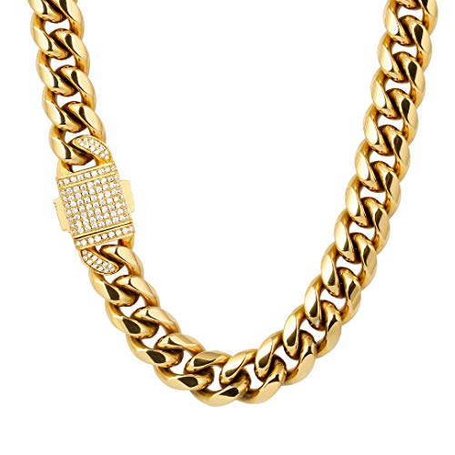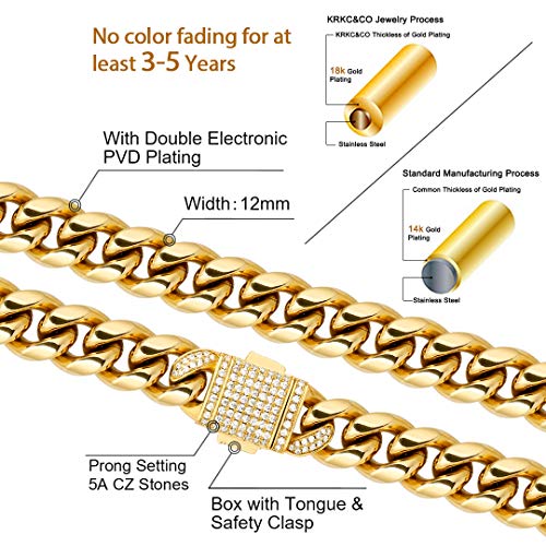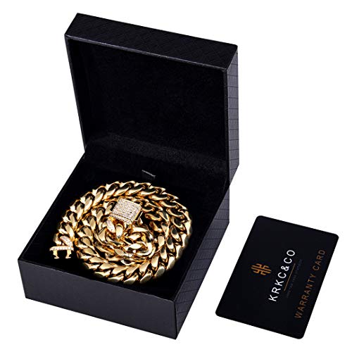 KRKC&CO Collana Cubana in Acciaio 10mm 12mm Hip Hop Collana a Catena Cubana 18k Oro Fermaglio con Zirconi Miami Cuban Link Chian Rapper 45-61cm