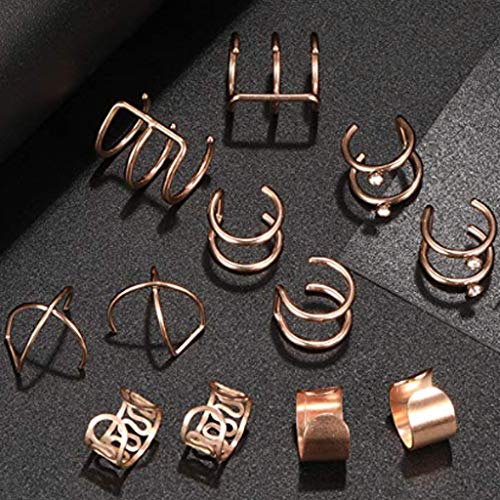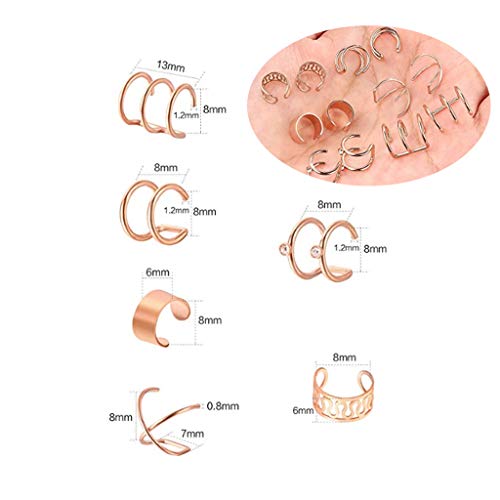 LEEQ 6 Paia Orecchio Clip in Acciaio Inossidabile Non Piercing Orecchini Cerchio Orecchio Polsini Cartilagine Orecchio Clip Set per Uomini Donne, 6 Diversi Stili (Rosa-Oro)