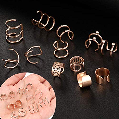 6 Paia orecchio clip in acciaio inossidabile non piercing orecchini cerchio orecchio polsini cartilagine orecchio clip set per uomini donne, 6 diversi stili Caratteristiche: 6 Vari stili clip orecchio: L'orecchio clips set contiene 6 diversi stili totalmente, delicato e unico, soddisfare tutte le vostre esigenze per diverse occasioni e adatto per tutti i tipi di abiti. Design non piercing: A differenza di normali orecchini con perni, che devono essere trafitto sulle orecchie e colpire i perni auricolari nel foro, le clip orecchio sono solo bisogno di essere ritagliato sulle orecchie, indossando facilmente e senza dolore piercing. Adatta universale: Adatto per persone con o senza fori per le orecchie, dimensioni regolabili, adatte per ragazzi, ragazze, uomini, donne. Qualità materiale: Fatto di acciaio inossidabile di qualità, la prova della ruggine e anti-corrosione, lo proteggono dall'essere allergico. Specifiche: Diametro delle clip orecchio: circa 8 mm/ 0.31 pollici (regolabile) Altezza delle clip orecchio: da 0.6 cm a 1.2 cm Colore: colore rosa-oro Materiale: acciaio inossidabile Quantità: 6 paia Il pacchetto include: 6 Paia di cuffia orecchio (6 stili) Note: Piccole parti, si prega di tenerli lontani da bambini sotto 3 anni. Evitare il contatto con il calore o il luogo sotto il sole direttamente, anche evitare solventi o prodotti chimici, come il profumo o sapone. Si prega di toglierli prima di fare la doccia o fare esercizio.