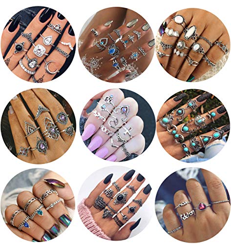 - SET DI ANELLI IMPILABILI VINTAGE VINTAGE: Un ordine è possibile ottenere 84 anelli di nocca. Abbiamo anelli a onde, anello di strass, anelli turchesi, anello di luna, anello di cz di alone, anello di corona, anelli vintage, anello di tartaruga, anello di elefante, anello di palma, ecc. Compralo da solo, per l'abbigliamento, o aggiungi la moda, o regalalo alla tua famiglia e ai tuoi amici, questa combinazione merita la tua scelta.
