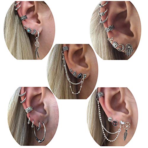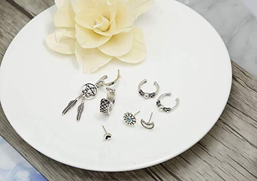- SET DI ORECCHINI CON CUFFI CONFORMI: Un set include 5 orecchini di confezione. Questi simpatici orecchini vintage creano un design ispirato al retrò naturale. È realizzato in lega placcata argento con peso leggero. Orecchini polsini dell'orecchio piercing, senza nickel, proteggono l'orecchio dall'allergia. È mini-size e molto carino con buona fortuna, per mostrare il tuo amore per la natura, e ti renderà più carino e attraente. Basta aggiungerlo al carrello e goderne.
