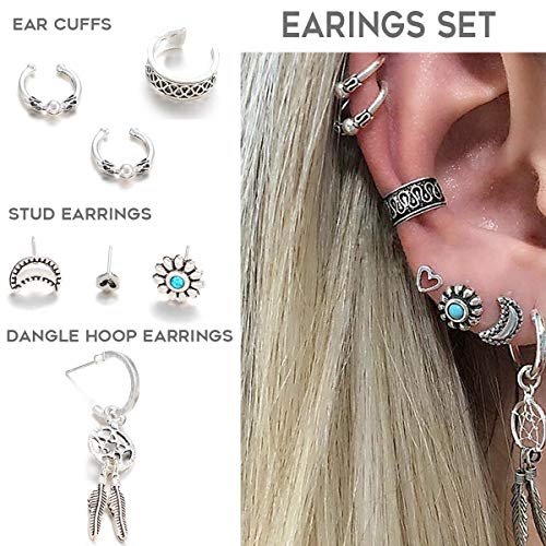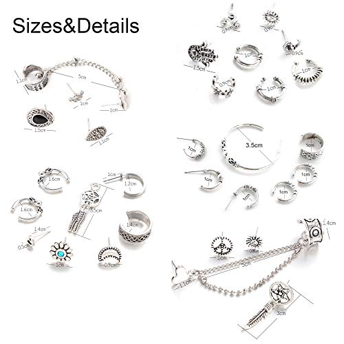 Milacolato Orecchini di Polsini Set Orecchini Boho Crawler per Donne Ragazze Orecchini Antichi a Cerchio Tribale Boemo Antico Orecchini Punteggiati di Cartilagine