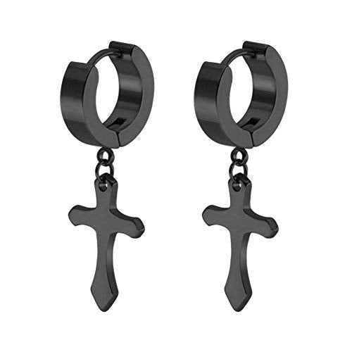 Orecchini da Uomo Donna in Acciaio Inossidabile a Cerchio Nero Huggie Negro-6