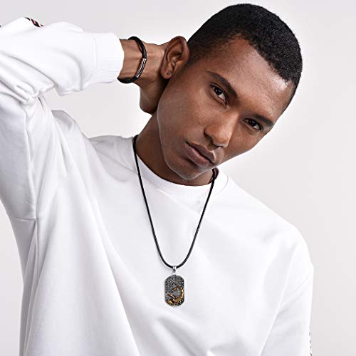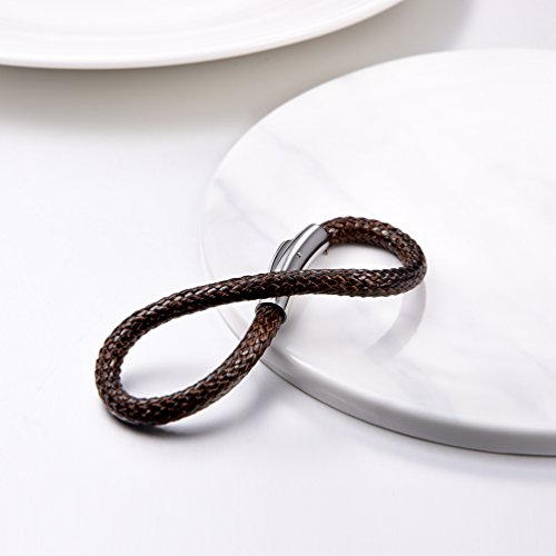 PROSTEEL Bracciale Uomo in Pelle Nera Marrone, Chiusura di Acciaio 01 Marrone