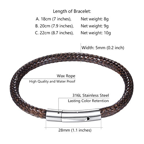 - ❥ Briacciale in Cera Impermeabile: Briacciale in corda intrecciata di pelle PU con rivestimento in cera impermeabile, che Le permette di indossare nella doccia, o nuoto, anzi al mare! Briacciale sottile a design semplice, può indossarlo con da solo o impilarlo con i altri bracciali, bracciale classico ed alla moda, anche perfetto come un regalo per i familiari o amici! ✙ Larghezza della corda: 5 mm, larghezza della chiusura: 7 mm.