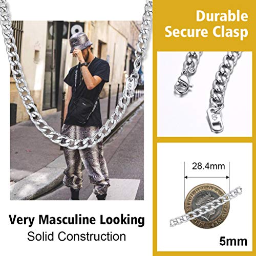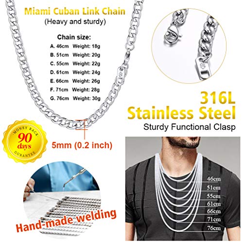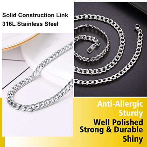 PROSTEEL Collana Uomo a Catena Cubana Incisione Semplice per Argento(5mm)