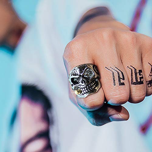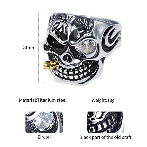 Ranikeer Anello da Uomo in Acciaio al Titanio,Anello Teschio Diamante Stile Punk Regalo per Compleanno Natale e Feste