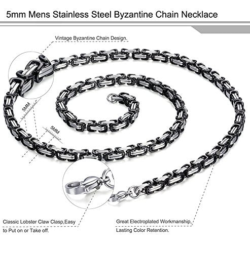 - 5mm Stile Bizantino Catena,Vintage e Maschile,Si Può Anche Collocare Altri Pendenti Con la Catena Se Si Desidera.