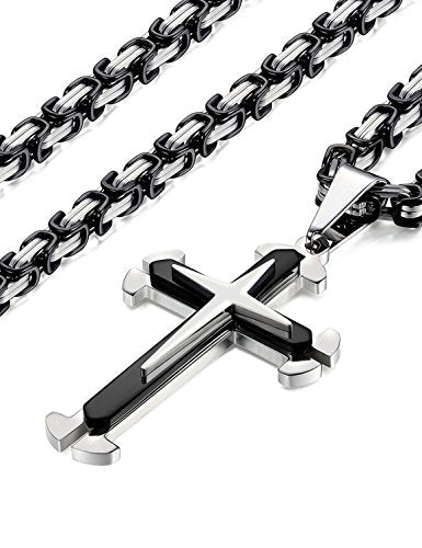 sailimue Collana in Acciaio Inox Croce Catena Collana Bizantino Gli Uomini 22-30 Pollici