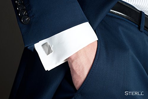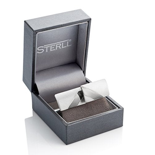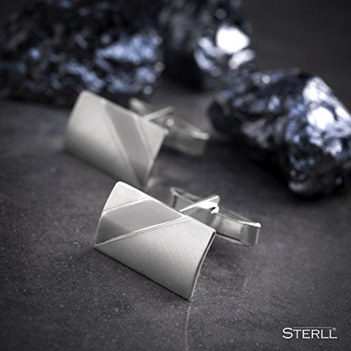 Sterling - Gemelli da uomo in argento Sterling 925 spazzolato, con custodia ossidata a righe